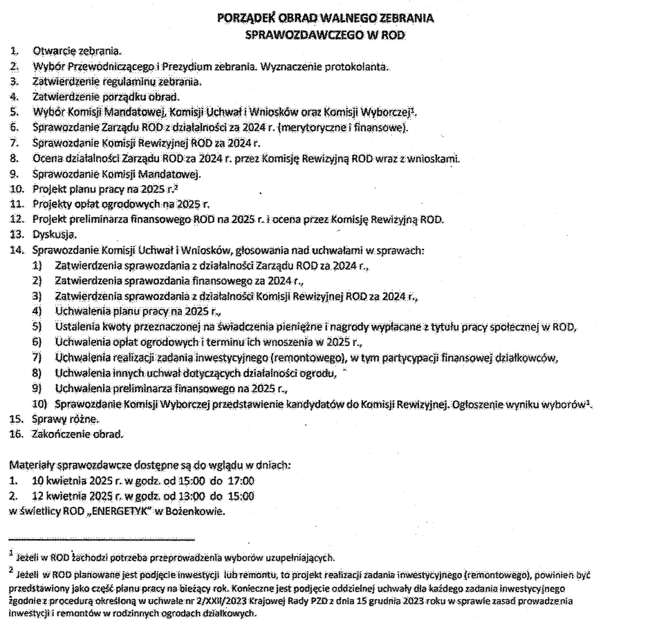 Zwracamy się do zarządów ROD o realizację ww. obowiązku w terminie! Czyn ten, polegający na braku złożenia deklaracji zagrożony jest karą grzywny, stosownie do art. 27 h ustawy z dnia 21 listopada 2008 r. o wspieraniu termomodernizacji i remontów oraz o centralnej ewidencji emisyjności budynków.